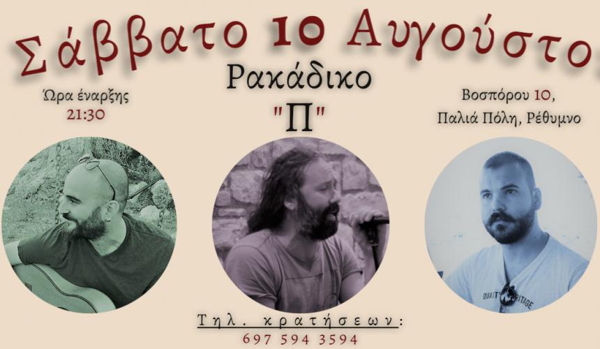 08.08.2024 16:16Μουσική βραδιά στο Ρακάδικο Πιτσιδιανός Facebook Twitter Copy link 10 Αυγούστου στις 21:00 - 23:30Ο Βαγγέλης Βουτσαδάκης, ο Χάρης Χατζημανώλης και ο Βλαδίμηρος Ουρανός ζωντανά στο Ρακάδικο Πιτσιδιανός (Βοσπόρου 10, Παλιά πόλη).Έναρξη 21.00. Facebook Twitter Copy link ΣΧΕΤΙΚΑ ΑΡΘΡΑ Οικονομία 14.12.2025 20:01Ο τραγέλαφος με τα ενοίκια των 10 ευρώ σε ακίνητα 120 τ.μ. φέρνει σενάρια για κατώτατα όρια – Τι εξετάζει η κυβέρνηση Κόσμος 14.12.2025 19:59Σίδνεϊ: Επί 10 λεπτά πυροβολούσαν ανενόχλητοι οι μακελάρηδες - Πώς ένας ιδιοκτήτης μίνι μάρκετ έσωσε δεκάδες ανθρώπους Ελλάδα 14.12.2025 19:56Αγρότες: Αυτά είναι τα επίσημα αιτήματα - Κατώτερες εγγυημένες τιμές, ρεύμα στα 7 λεπτά η κιλοβατώρα Κρήτη 14.12.2025 19:53Άκαρπες οι έρευνες για τον 33χρονο γιατρό του Βενιζέλειου - Στο «κόκκινο» η αγωνία της οικογένειάς του