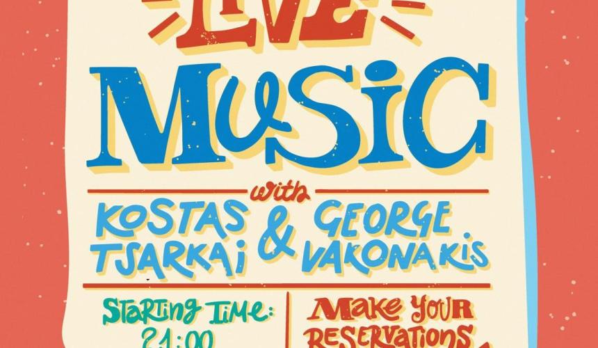 Ελάτε να απολαύσετε ζωντανά τον Κώστα Τσαρκάι και τον Γιώργο Βακωνάκη σε ένα μουσικό πρόγραμμα γεμάτο εκπλήξεις, μελωδίες και καλοκαιρινή διάθεση!