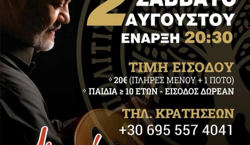 02.07.2025 22:04Ο Μανώλης Κονταρός στην Καρέ Ρεθύμνου Facebook Twitter Copy link Κρητική βραδιά στην Καρέ Ρεθύμνου το Σάββατο 2 Αυγούστου με το Μανώλη Κονταρό.Διοργάνωση Πολιτιστικός Σύλλογος Καρέ Ρεθύμνου.Έναρξη 20:30 – Είσοδος 20€ με πλήρες μενού και ένα ποτό.Τηλ. 69555 74041. Facebook Twitter Copy link ΣΧΕΤΙΚΑ ΑΡΘΡΑ Ελλάδα 13.12.2025 16:47Συνέλευση αγροτών: «Όχι» στο κάλεσμα Μητσοτάκη για συνάντηση τη Δευτέρα - Καταθέτουν λίστα με αιτήματα Ρέθυμνο 13.12.2025 15:48Επανεκλογή Γιάννη Μαρινάτου στο Γενικό Συμβούλιο της ΑΔΕΔΥ Κόσμος 13.12.2025 13:39Το ανεξέλεγκτο τοπίο μιας βιομηχανίας σπέρματος 2,3 δις. ευρώ πίσω από τον Δανό δότη - Οι αποκαλύψεις του BBC Ελλάδα 13.12.2025 13:34Ώρα αποφάσεων για τους αγρότες μετά την πρόσκληση Μητσοτάκη: Ο διάλογος, τα αιτήματα και τα μέτρα