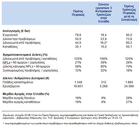 H Τράπεζα Πειραιώς απέκτησε τις ελληνικές τραπεζικές δραστηριότητες της Τράπεζας Κύπρου, της Cyprus Popular Bank και της Ελληνικής Τράπεζας.