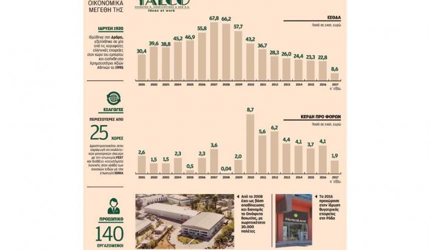 Το εύρος της κρίσης στην Yalco γίνεται ίσως ευκολότερα αντιληπτό εάν αναλογιστεί κάποιος πως ο όμιλος το 2007 είχε κύκλο εργασιών 67,82 εκατ. ευρώ και το 2016 αυτός είχε συρρικνωθεί, πλέον, στα μόλις 22,8 εκατ. ή κοντά στο 50% του δανεισμού της. Και αυτά ενώ τα προηγούμενα πολλά χρόνια είχε αλλεπάλληλες ζημιογόνες χρήσεις. Μπόρεσε όμως το 2016 να εγγράψει προ φόρων κέρδη ύψους 4 εκατ. ευρώ. Ηταν τότε, τον Δεκέμβριο του 2016, δύο μέρες πριν από εκείνα τα Χριστούγεννα, που ολοκλήρωσε σε συνεργασία με τις δανείστριες τράπεζες την αναδιάρθρωση του συνολικού της τραπεζικού δανεισμού.