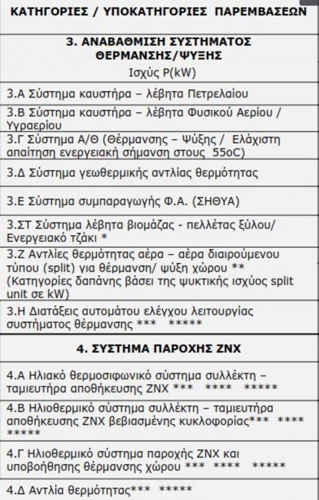 Κατά τις ίδιες πηγές, οι ιδιοκτήτες που θα εγκριθούν για το πρόγραμμα θα μπορούν να κάνουν πλήθος παρεμβάσεων στις κατοικίες τους, όπως αντικατάσταση κουφωμάτων, θερμομόνωση του κελύφους του κτιρίου, αναβάθμιση του συστήματος θέρμανσης αλλά και αναβάθμιση του συστήματος ζεστού νερού χρήσης.
