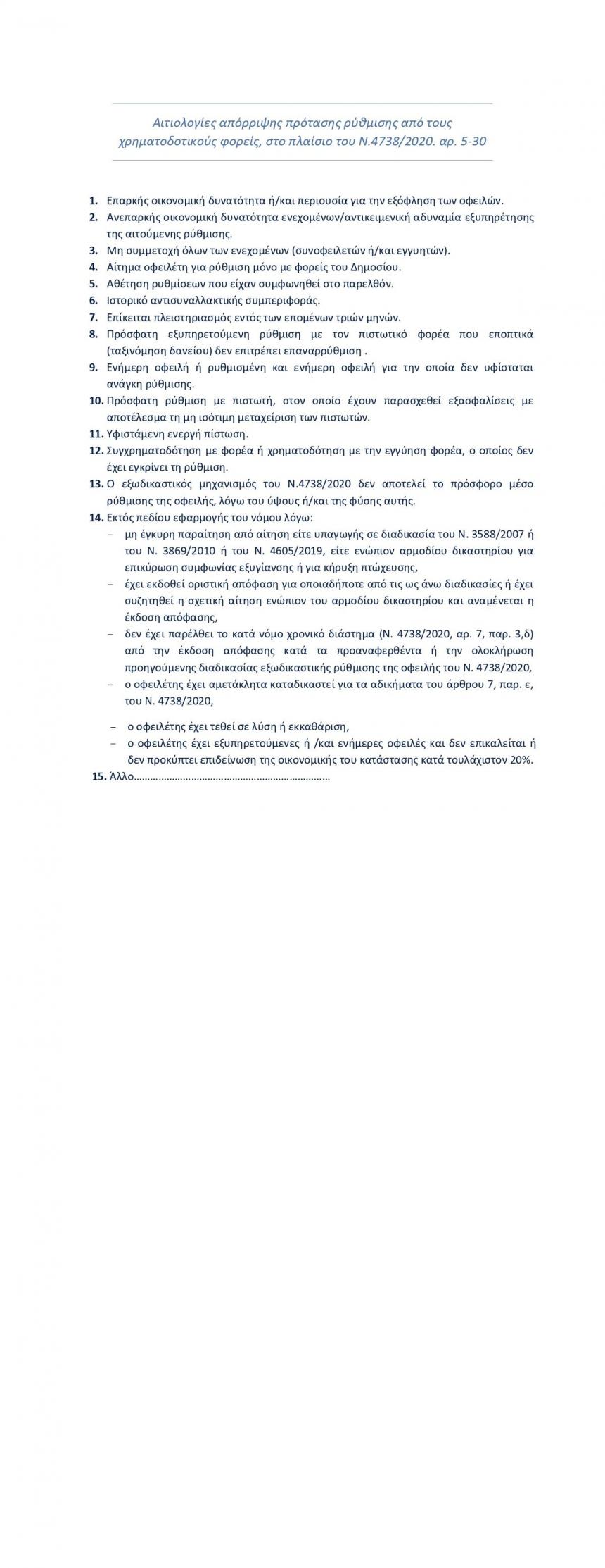 Η λίστα με τους λόγους απόρριψης απεστάλη στην Ειδική Γραμματεία Διαχείρισης Ιδιωτικού Χρέους από τους χρηματοδοτικούς φορείς.