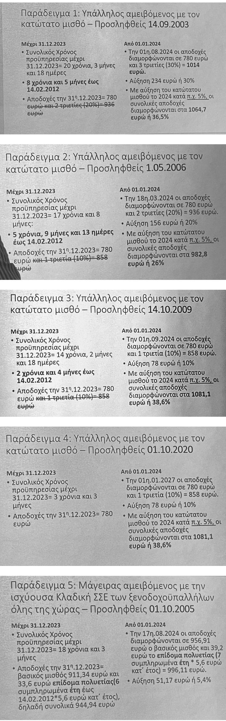 Επομένως, ένας εργαζόμενος που σήμερα αμείβεται με τον κατώτατο μισθό, από 1/1/2024, θα «τρέχει» ο χρόνος του και θα δικαιούται αναλόγως την προϋπηρεσία του 10% ανά τριετία.