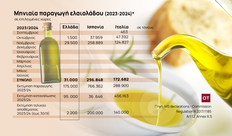 Χαρακτηριστικό είναι, σύμφωνα με τα στοιχεία της Eurostat το Δεκέμβριο 2023, η τιμή του ελαιολάδου αυξήθηκε στην Ελλάδα κατά 58,5%, ενώ σε ευρωπαϊκό επίπεδο η αντίστοιχη αύξηση για το 2023 έφτασε στο 54%.