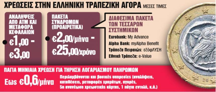 - Τρίτον, θα προωθηθούν τα λεγόμενα πακέτα συνδρομών που έχουν λανσάρει σήμερα όλες οι συστημικές τράπεζες.Πρόκειται για προαγορά πακέτων από 2 έως 10 ευρώ τον μήνα ή 25 ευρώ τον χρόνο που περιλαμβάνουν ανάλογο αριθμό δωρεάν κινήσεων (μεταφορές, εμβάσματα, πάγιες εντολές, αναλήψεις, συνδρομές καρτών κ.ά.). Διευκρινίζεται ότι η διάθεση των πακέτων αυτών είναι προαιρετική και για αυτούς που κάνουν πολλές συναλλαγές μπορεί να είναι μια συμφέρουσα λύση.