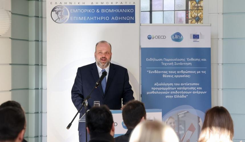 Τα αποτελέσματα της αξιολόγησης ενεργητικών πολιτικών απασχόλησης που πραγματοποίησε ο ΟΟΣΑ, σύμφωνα με τα οποία η απασχολησιμότητα και το εισόδημα των ωφελουμένων ενισχύθηκε σημαντικά, παρουσιάστηκαν στην εκδήλωση «Συνδέοντας τους ανθρώπους με τις θέσεις εργασίας: Αξιολόγηση του αντίκτυπου προγραμμάτων κατάρτισης και μισθολογικών επιδοτήσεων ανέργων στην Ελλάδα», που διοργάνωσαν η ΔΥΠΑ και ο Οργανισμός Οικονομικής Συνεργασίας και Ανάπτυξης.