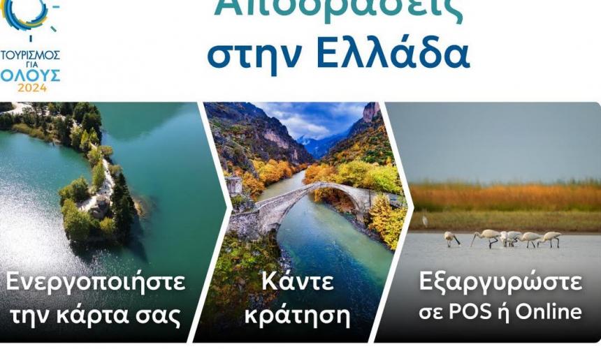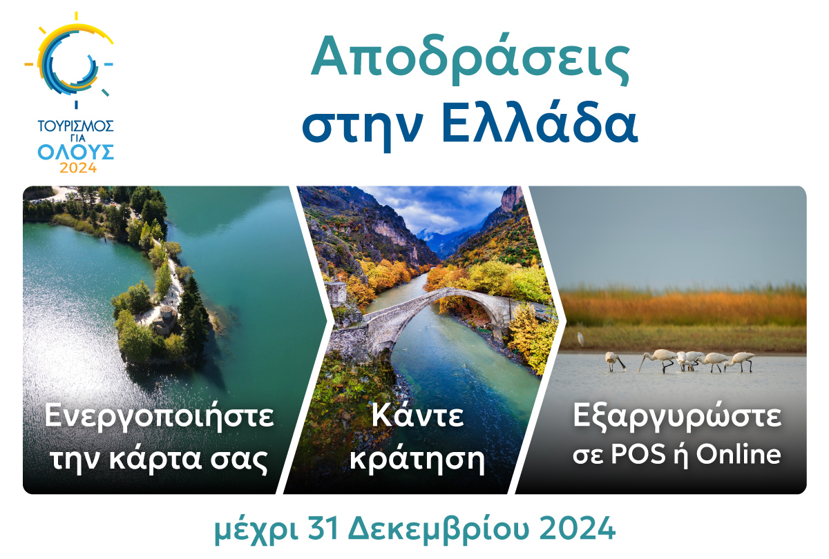 Το Πρόγραμμα "Τουρισμός για Όλους 2024" συνεχίζει να προσφέρει οικονομική στήριξη στους κληρωθέντες δικαιούχους του, δίνοντάς τους την ευκαιρία να ανακαλύψουν μοναδικούς προορισμούς στη χώρα με την εξαργύρωση της ψηφιακής κάρτας του Προγράμματος, όπως ακριβώς με μια απλή χρεωστική κάρτα.