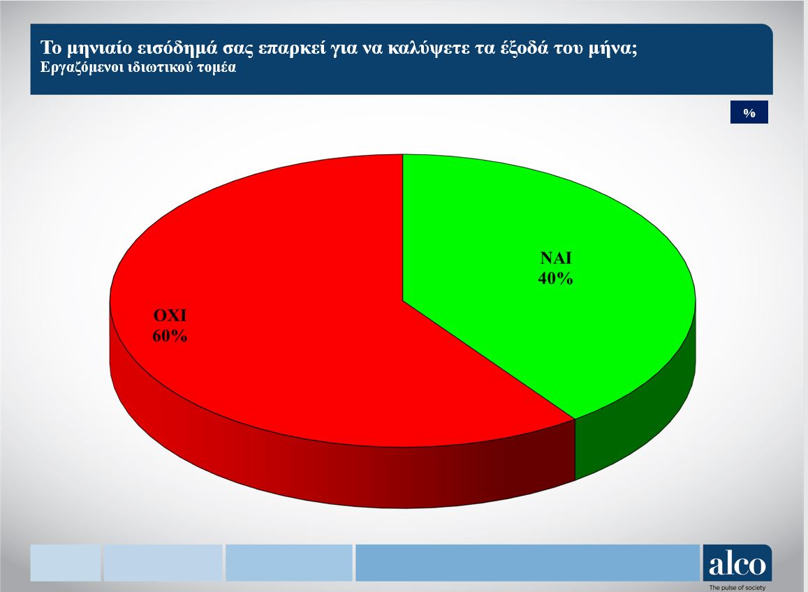 Για τους έξι στους δέκα μισθωτούς του ιδιωτικού τομέα, τα χρήματα τελειώνουν πριν βγει ο μήνας, σύμφωνα με νέα έρευνα της Αlco για τη ΓΣΕΕ.