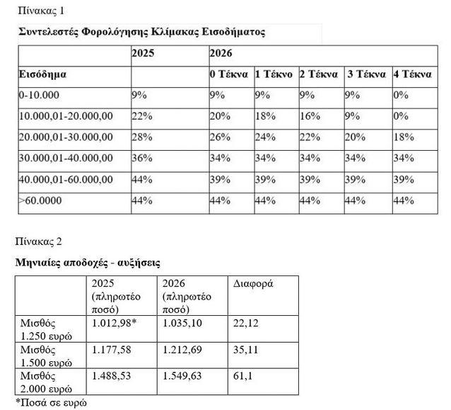 Όπως επισημαίνει ο γνωστός λογιστής – φοροτεχνικός Νίκος Φραγκιαδάκης, «με την καταβολή της μισθοδοσίας Ιανουαρίου οι μισθωτοί θα δουν την αύξηση στις καθαρές αποδοχές που φέρνει η μείωση των φορολογικών συντελεστών από 1/1/2026. Η παρούσα φορολογική μεταρρύθμιση βασίζεται σε δυο άξονες. Την ηλικία του φορολογούμενου, αφού διαφορετικά αντιμετωπίζονται οι νέοι έως 25 ετών, όσοι είναι από 25-30 ετών και όσοι είναι άνω των 30 ετών και την ύπαρξη προστατευόμενων τέκνων όπου όσο αυξάνονται, τόσο μειώνονται οι φορολογικοί συντελεστές, δίνοντας μια, όχι αρκετή, αλλά ανάσα ειδικά στους φορολογούμενους με 3 παιδιά και πάνω.