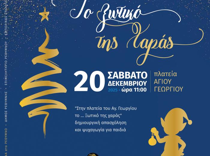 Santa’s Village στο 8ο Δημοτικό Σχολείο Ρεθύμνου Την Κυριακή 14 Δεκεμβρίου, από τις 11:00 π.μ. έως τις 16:00 μ.μ., το σχολείο μας μεταμορφώνεται σε ένα λαμπερό χωριό του Άγιου Βασίλη, γεμάτο... 10.12.2025 10:05