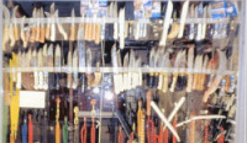 Λάμες χοντροκομμένες και άτεχνες, ή πολύ λεπτές και ψεύτικες, πλαστικές θήκες και πλαστικές ή από διαφανές πλέξι-γκλας λαβές, που έχουν προσαρμοστεί βιαστικά και παράγωνα πάνω στο μαχαίρι.
