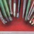 4) Η χρησιμοποίηση πάντα διπλών καρφιών (πύρων, περτσινιών) , συνήθως 3 σειρές, (ή και περισσότερων ανάλογα με το μέγεθος του μαχαιριού) για την στερέωση των μανικιών στη λαβή,
