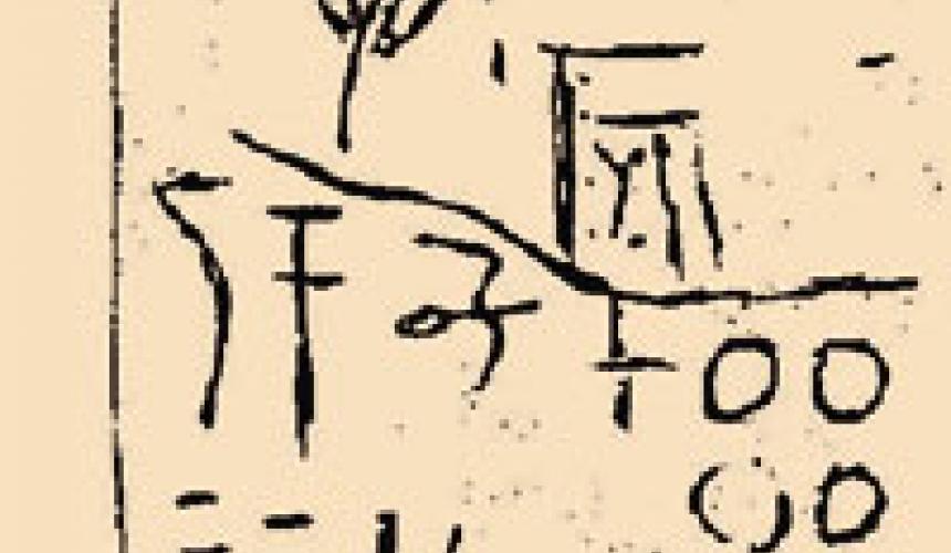 Το μεγαλύτερο ενδιαφέρον επικεντρώνεται στην τρίτη εγχάρακτη επιγραφή, η οποία φέρει με κλασματικά σύμβολα της γραμμικής Α' τους τέσσερις πρώτους όρους μιας γεωμετρικής προόδου. Το κείμενο της εγχάρακτης επιγραφής παρατηρούμε στην παρατιθέμενη εικόνα. Η μεταγραφή των αριθμητικών σημείων του κειμένου και η μετατροπή τους σε σύγχρονη μορφή είναι η εξής: