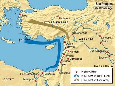 «Οι Φιλισταίοι παραδοσιακά, θεωρούνται ότι κατάγονται από την Κρήτη. Ήταν ένα τμήμα των «Λαών της Θάλασσας», οι οποίοι προερχόμενοι από το Αιγαίο μετακινήθηκαν στη νοτιανατολική Μεσόγειο» (http://www.phoenicia.org/).