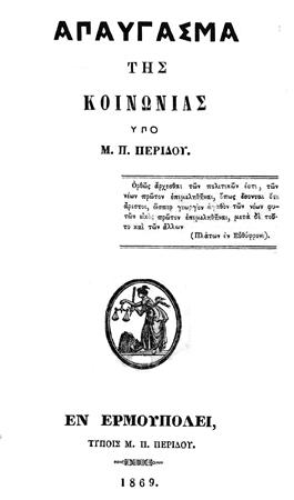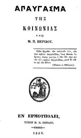 -Και οι τέσσερις, άλλωστε, αγνοούν παντελώς το όνομα του συγγραφέα και αφιερωτή Μ.Π. Περίδη. Ποιος είναι αυτός; Μα ο δραστηριότερος, ίσως, βιβλιοπαραγωγός της εποχής του (ηρακλειώτικης καταγωγής, δραστηριοποιούμενος στη Σύρο, κατά το 19ο αιώνα). Εκτός του ότι είχε δικό του τυπογραφείο, τα βιβλία που ο ίδιος συνέγραψε (λεξικά και μεταφράσεις, τα περισσότερα) ανέρχονται σε αρκετές δεκάδες!