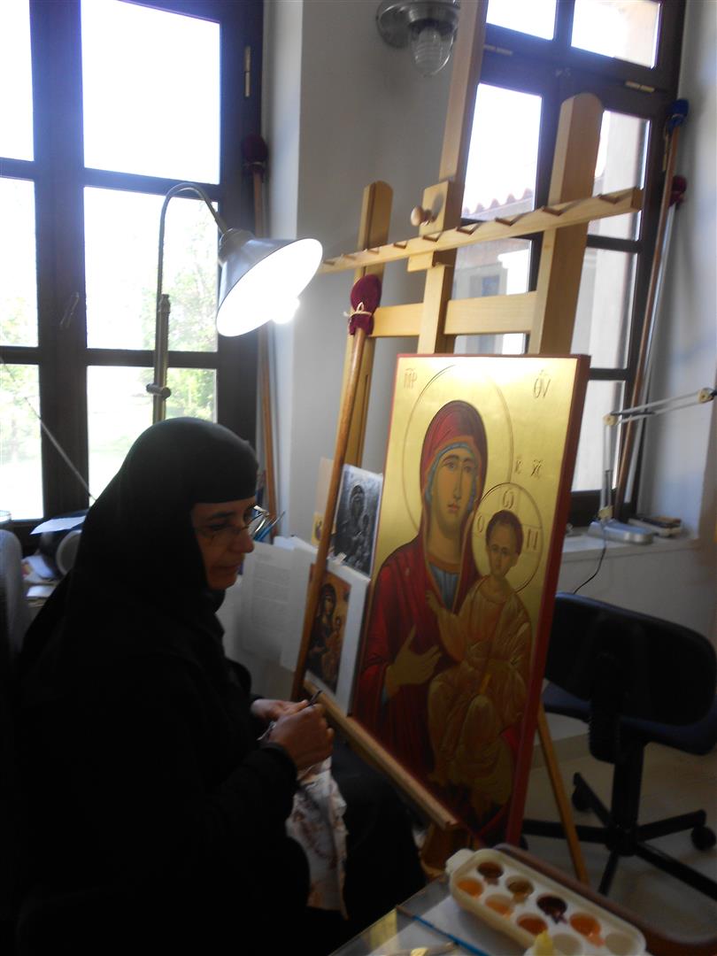 Ναι το 1992 μπήκαμε στα Μεσογειακά Προγράμματα, τα γνωστά ΜΟΠ και είχαμε πάρει γύρω στα τριάντα εκατ. Και δόξα τω Θεώ έγινε πολύ δουλειά. Μετά σταματήσαμε για μια δεκαετία και το έργο γινόταν από το ίδιο το μοναστήρι, από το εργόχειρο των αδελφών, από τις προσφορές των πιστών και τις δωρεές. Ακόμη και τις κληρονομιές του βάλανε οι αδελφές, ότι είχαμε και δεν είχαμε το πουλήσαμε για να τελειώσουμε και για να βάλουμε συμμετοχή, ώστε για να ενταχθούμε σε ένα πρόγραμμα του Αναπτυξιακού νόμου. Και έτσι φτιάξαμε τα εργαστήρια πάνω το ιεροραφείο και την αγιογραφία.