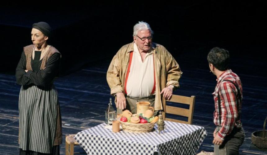 *Στην παράσταση παίζουν: Κώστας Βουτσάς - Μπαρμπα Ανέστης, Θανάσης Τσαλταμπάσης - Μέλιος, Κώστας Λάσκος - Θόδος, Αλίκη Κατσαβού - Αρετή, Βίκυ Μαραγκάκη - Αγλαϊτσα, Θάνος Χρόνης - Σκαμβουράς, Βασίλης Μήλιος - Γυμνασιάρχης, Σωτήρης Δούβρης - Δακρυτζίκος, Νίκος Φιλημέγκας - Σταμίρης, Άντα Αθανασοπούλου - Αγράμπελη, Αλεξάνδρα Κιρέτση - Καλιοντζή, Αθηνά Μετρίδη - Μαθήτρια, Κώστας Μητσόπουλος - Χαμωλιάς κ.α.