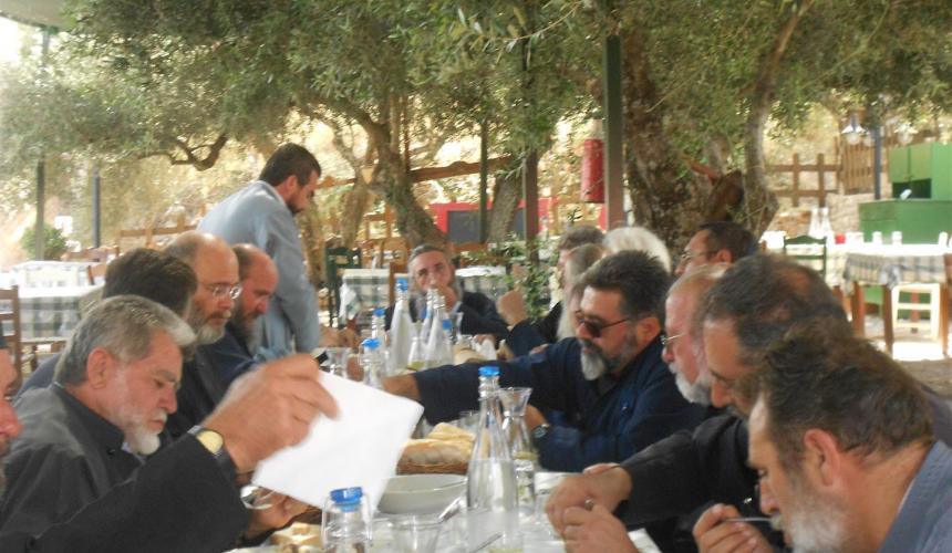 Τα προβλήματα που απασχολούν το Σύνδεσμο Κληρικών της εκκλησίας Κρήτης, τέθηκαν στο τραπέζι όπου είχαν την ευκαιρία να τα συζητήσουν στην Αργυρούπολη Ρεθύμνης, οι εκλεγμένοι πρόεδροι του Συνδέσμου, της κάθε Μητροπόλεως της εκκλησίας της Κρήτης. Οι πρόεδροι ήταν φιλοξενούμενοι του Συνδέσμου της δικιά μας Μητροπόλεως , όπου πρόεδρος είναι ο αιδ. Σωκράτης Ξενικάκης και Αντιπρόεδρος ο αιδ. Γεώργιος Λελεδάκης . Έτσι Βρέθηκαν στην Αργυρούπολη όπου πριν την έναρξη των εργασιών, της συνάντησης τους επισκέφθηκαν το Κέντρο Κρητικής Γαστρονομίας. Στην συνέχεια ενημερώθηκαν από τον πρόεδρο της Ένωσης Συνδέσμου Κληρικών της Εκκλησίας της Κρήτης αιδ. Ζαχαρία Αδαμάκη , για το πρόσφατο ταξίδι που είχε στην Αθήνα όπου επισκέφτηκε το Υπουργείο και έθεσε μια σειρά από θέματα που απασχολούν τους κληρικούς . Μετά την ενημέρωση αυτή συζήτησαν την στάση που πρέπει να κρατήσουν και αποφάσισαν τις επόμενες κινήσεις τους, προκειμένου να βρουν επίλυση στα χρονίζοντα προβλήματα τους . Διακριτικός πάντα ο Μητροπολίτης Ρεθύμνης και Αυλοποτάμου κ.κ. Ευγένιος , δεν θέλησε να παρευρεθεί από την αρχή των εργασιών , ώστε οι πατέρες να μπορούν να εκφράσουν ελεύθερα τις θέσεις και τις απόψεις του πάνω στα θέματα που τους αντιμετωπίζουν. Στο τέλος της συνάντησης ο Επίσκοπος τους επισκέφθηκε και συνέφαγε μαζί τους , ενώ δεν παρέλειψε να τους δώσει και αναμνηστικά δώρα από την Μητρόπολη μας .