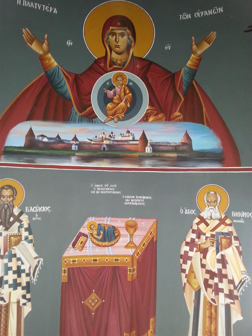 Θα πρέπει να σημειωθεί ότι, αν αποφασιζόταν να γίνει η αγιογράφηση του Ναού με ρώσικη τεχνοτροπία, το έργο θα ανατίθετο ασφαλώς σε Ρώσο αγιογράφο, καθώς η χώρα διαθέτει έξοχους τεχνιτες της τεχνοτροπίας αυτής.