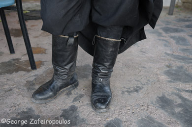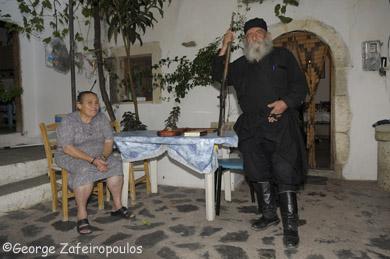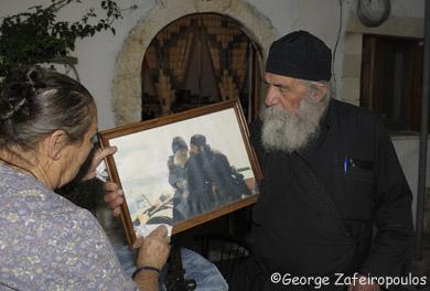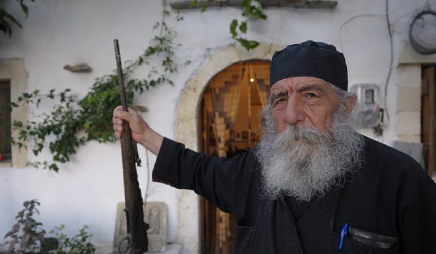 Μόλις τέλειωσε τη φράση του ο παπα-Γιώργης έφυγε για λίγο και γύρισε κρατώντας ένα παλιό εγγλέζικο και παροπλισμένο τουφέκι με κομμένη την κάνη. Το κρατούσε καμαρωτά, ως ένδειξη παλικαριάς και άρνησης συμβιβασμού με κάθε μορφής κατεστημένο. Μερικοί Σφακιανοί τον παρομοιάζουν με τον Παπαφλέσσα, αλλά αυτός αρνείται κατηγορηματικά ότι μπορεί να μοιάσει έστω και στο μικρό δαχτυλάκι αυτού του μεγάλου επαναστάτη.