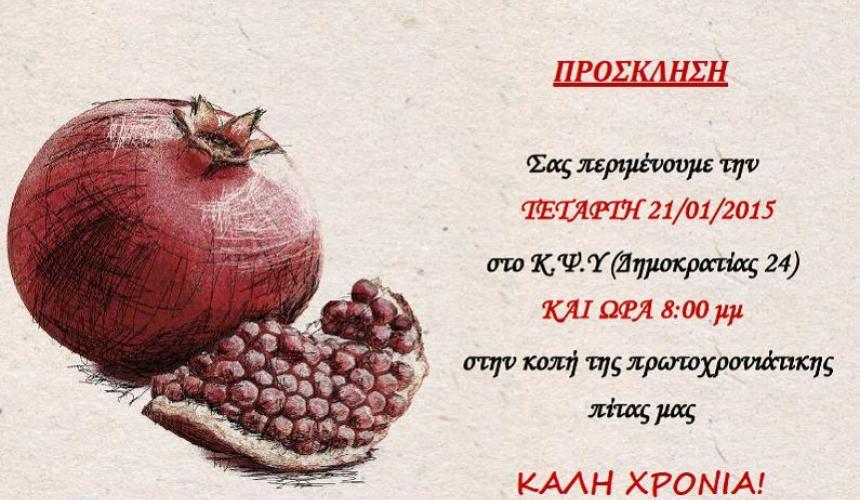 ΠΟΛΙΤΙΣΜΟΣ 15.01.2015 12:40Κέντρο Ψυχικής Υγείας: Εκδήλωση κοπής πρωτοχρονιάτικης πίτας Ρέθεμνος Newsroom Facebook Twitter Copy link 0 Το Κέντρο Ψυχικής Υγείας προσκαλεί φίλους, εθελοντές και πολίτες του Ρεθύμνου στην εκδήλωση κοπής πρωτοχρονιάτικης πίτας την Τετάρτη 21/01/2015 στις 8:00 μμ στο χώρο του Κ.Ψ.Υ( Δημοκρατίας 24) 0 Facebook Twitter Copy link ΣΧΕΤΙΚΑ ΑΡΘΡΑ Πολιτισμός 16.12.2025 08:58«Εγώ κι Εσύ»: 4 ΤΕΛΕΥΤΑΙΕΣ παραστάσεις – Δεν θα δοθεί άλλη παράταση Πολιτισμός 16.12.2025 08:57Χάρισε ένα βιβλίο, δυνάμωσε το φως! Πολιτισμός 15.12.2025 16:10Πλούσιο το εορταστικό πρόγραμμα εκδηλώσεων της τρέχουσας εβδομάδα Πολιτισμός 15.12.2025 13:01Χριστουγεννιάτικο απόγευμα γεμάτο βιβλία, ευχές και χαμόγελα στη Βιβλιοθήκη μας