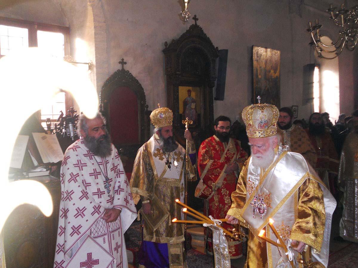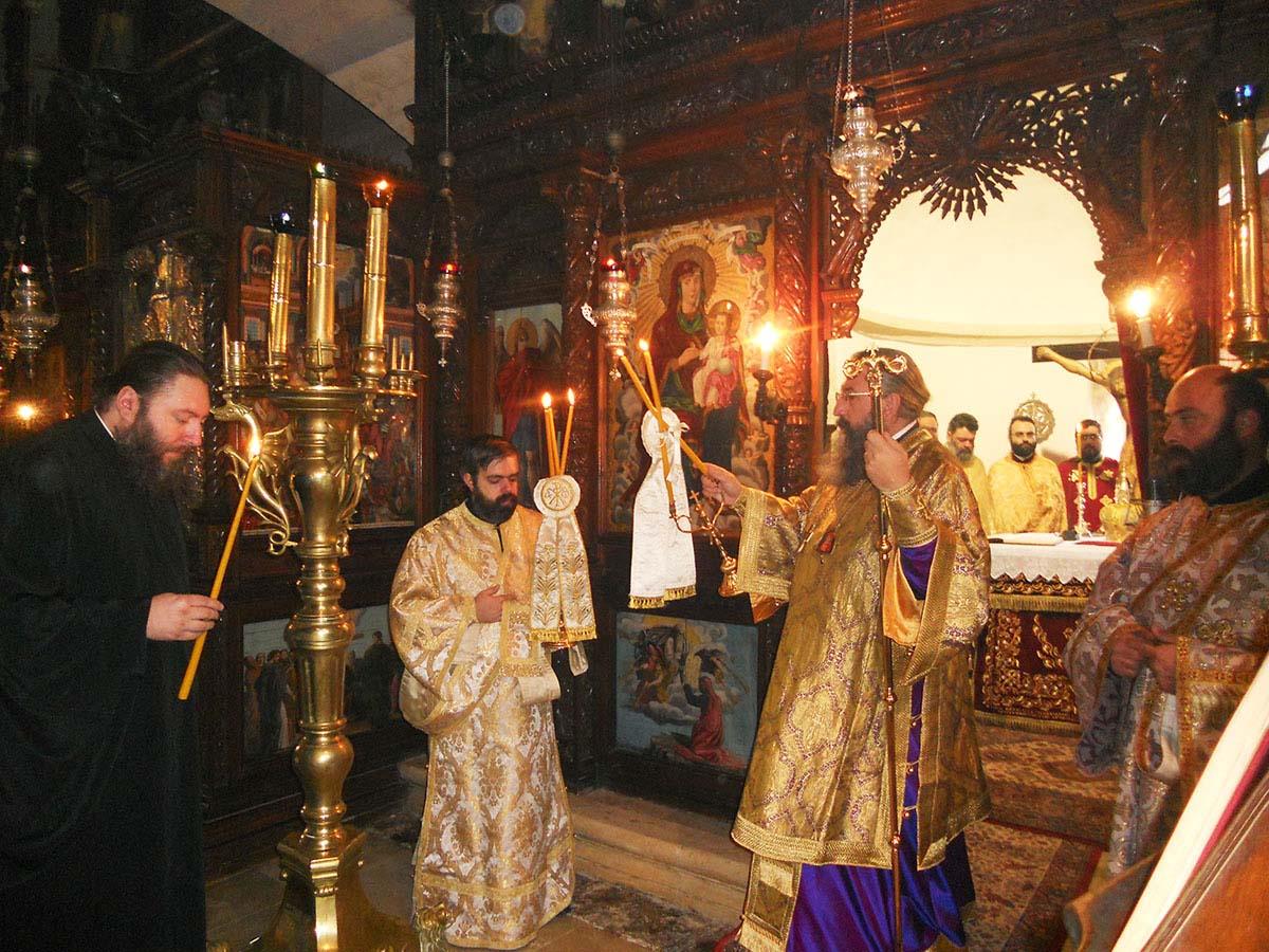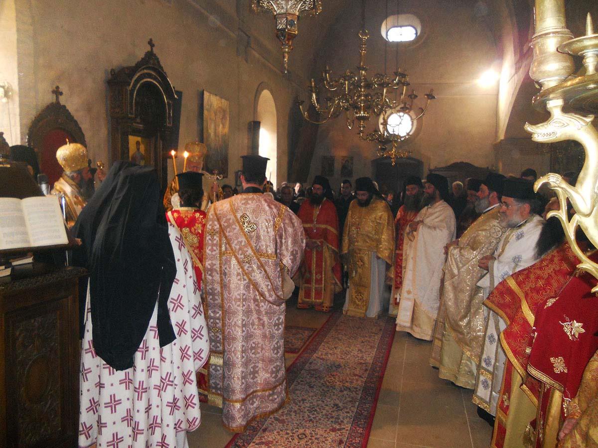 Με τον Σεβ. Αρχιεπίσκοπο Κρήτης, ο οποίος προέστη της Θείας Λειτουργίας, συλλειτούργησαν ο Επίσκοπός μας κ. Ευγένιος και πλήθος Ιερέων από τη Μητρόπολή μας και από άλλες Εκκλησιαστικές Επαρχίες της Κρήτης, μεταξύ των οποίων ο Πρωτοσύγκελλος της Ιεράς Μητροπόλεως Λάμπης, Συβρίτου και Σφακίων, Αρχιμ. Αθανάσιος Καραχάλιος και οι Ηγούμενοι: της Ιεράς Μονής Αγκαράθου, Αρχιμ. Γεράσιμος Μαρματάκης, της Ιεράς Μονής Πρέβελη, Αρχιμ. Ιάκωβος Λυκάκης, της Ιεράς Μονής Αρσανίου, Αρχιμ. Ευφραίμ Μανουσάκης, της Ιεράς Μονής Ρουστίκων, Αρχιμ. Ιωάννης Κουφουδάκης και της Ιεράς Μονής Δισκουρίου, Αρχιμ. Ραφαήλ Μαϊνωλάς.