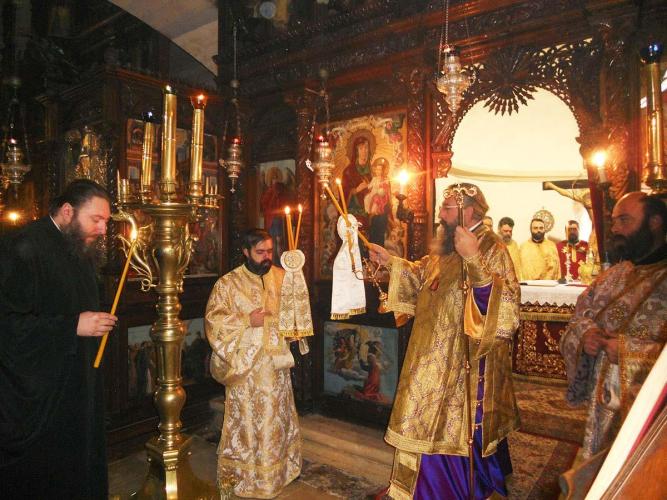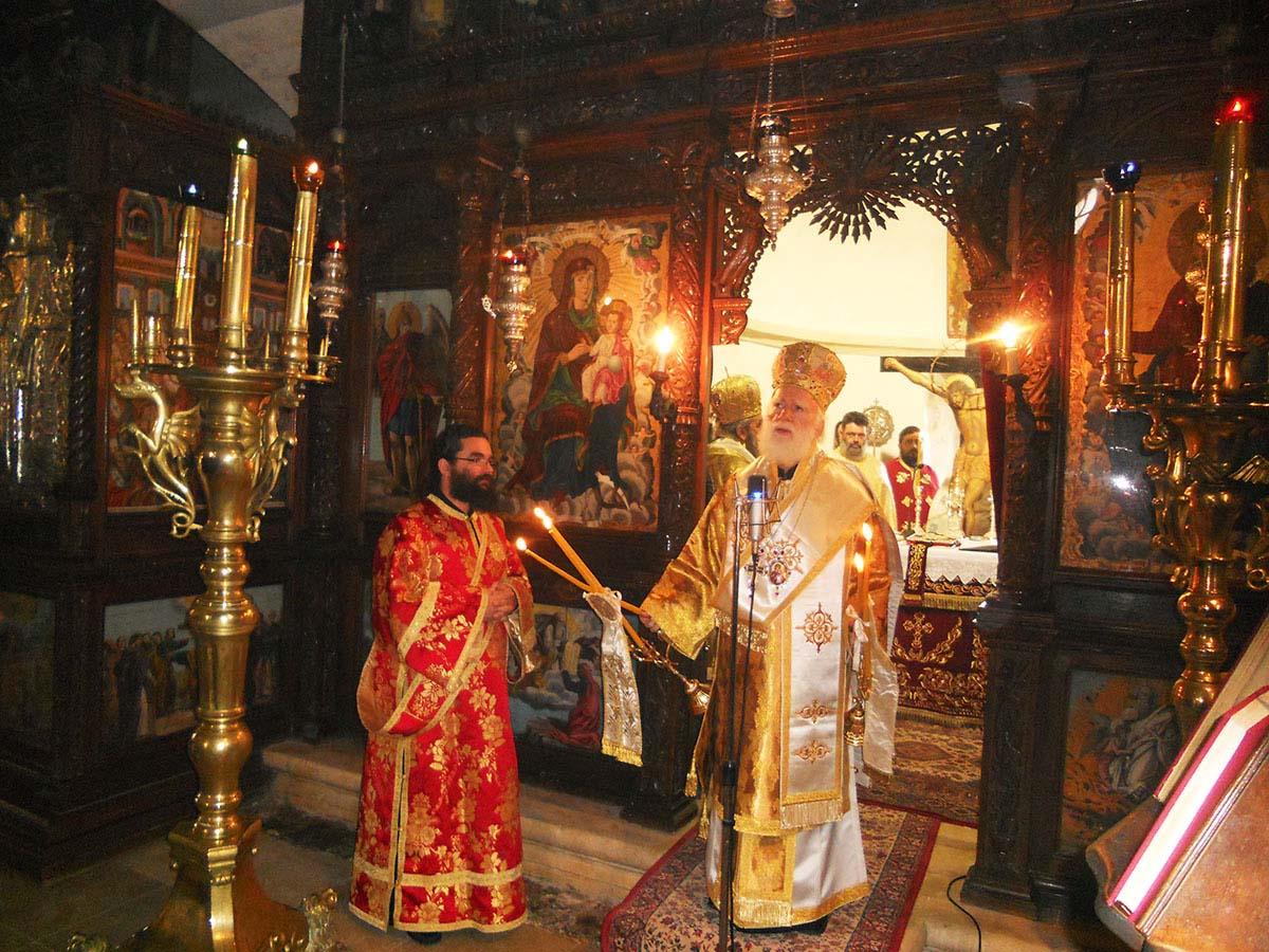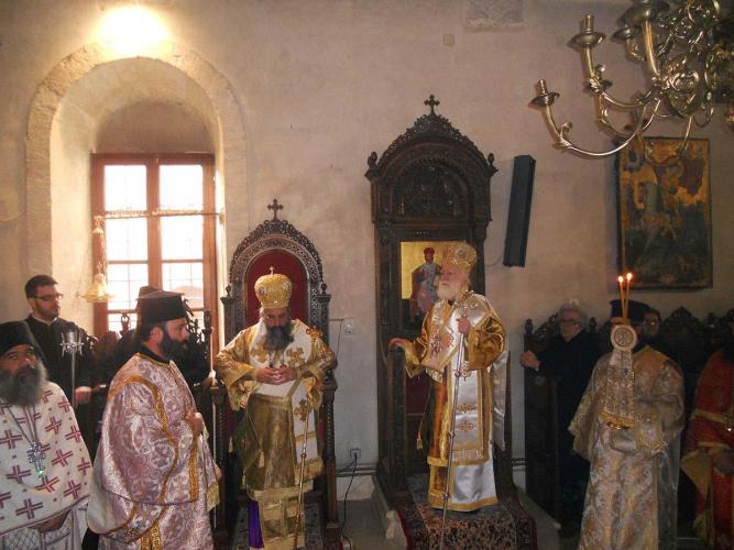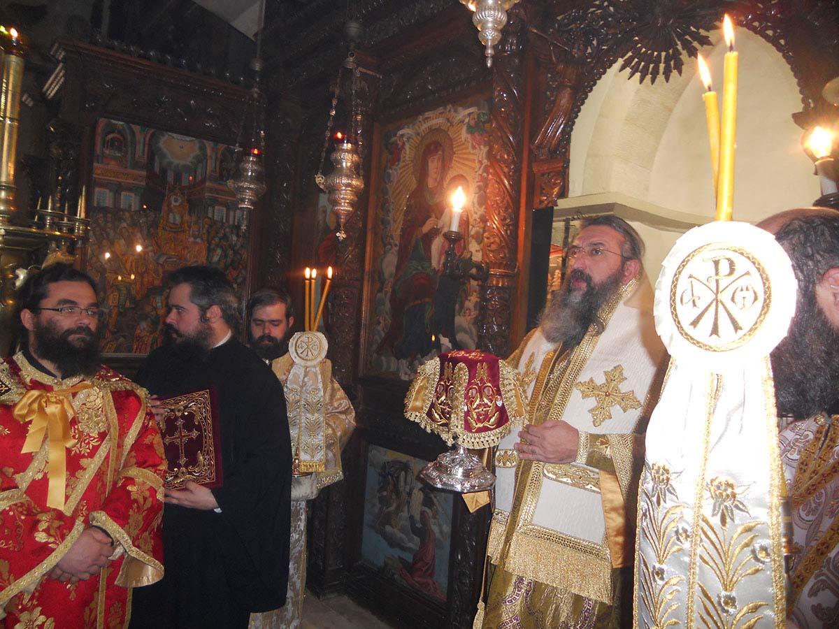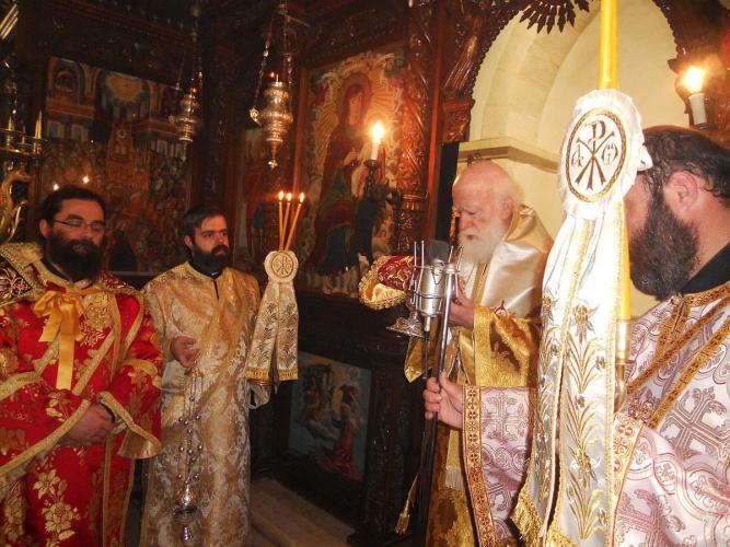 Με τον Σεβ. Αρχιεπίσκοπο Κρήτης, ο οποίος προέστη της Θείας Λειτουργίας, συλλειτούργησαν ο Επίσκοπός μας κ. Ευγένιος και πλήθος Ιερέων από τη Μητρόπολή μας και από άλλες Εκκλησιαστικές Επαρχίες της Κρήτης, μεταξύ των οποίων ο Πρωτοσύγκελλος της Ιεράς Μητροπόλεως Λάμπης, Συβρίτου και Σφακίων, Αρχιμ. Αθανάσιος Καραχάλιος και οι Ηγούμενοι: της Ιεράς Μονής Αγκαράθου, Αρχιμ. Γεράσιμος Μαρματάκης, της Ιεράς Μονής Πρέβελη, Αρχιμ. Ιάκωβος Λυκάκης, της Ιεράς Μονής Αρσανίου, Αρχιμ. Ευφραίμ Μανουσάκης, της Ιεράς Μονής Ρουστίκων, Αρχιμ. Ιωάννης Κουφουδάκης και της Ιεράς Μονής Δισκουρίου, Αρχιμ. Ραφαήλ Μαϊνωλάς.