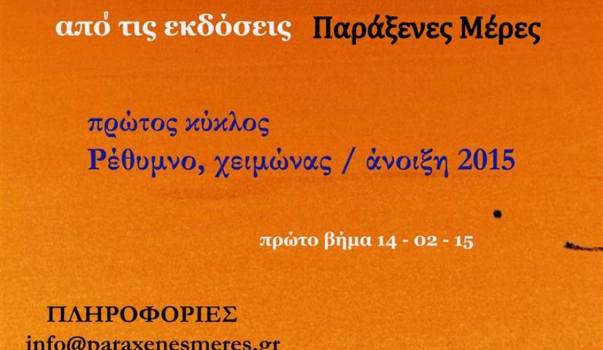 Οι εκδόσεις Παράξενες Μέρες δημιουργούν Εργαστήρι Γραφής και Συγγραφής στο Ρέθυμνο. Το Εργαστήρι θα λειτουργεί δύο φορές το μήνα και κάθε συνάντηση θα είναι δίωρη. Δηλώσεις συμμετοχής μέχρι το βράδυ της Κυριακής 8 Φεβρουαρίου με e-mail στο [email protected]
