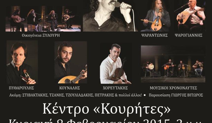 Ψαραντώνης, Ψαρογιάννης , Οικογένεια Ξυλούρη, Μιχάλης Κουνάλης, Βαγγέλης Πυθαρούλης, Ηλίας Χορευτάκης και πολλοί άλλοι ενώνουν τις δυνάμεις τους για να συγκεντρωθούν τρόφιμα - φάρμακα - ρούχα – παιχνίδια – σχολικά για τους συνανθρώπους μας που τα έχουν πραγματικά ανάγκη! Πρόκειται για μια πολύ μεγάλη Φιλανθρωπική Εκδήλωση η οποία θα πραγματοποιηθεί στην Μεγάλη Αίθουσα του κέντρου «Κουρήτες» (1ο χλμ Γαζίου-Τυλίσου, Τηλ. 2810823973-6, 6944583393, www.kurites.gr) την Κυριακή 8 Φεβρουαρίου 2015 στις 2 μ.μ. το μεσημέρι! Την εκδήλωση οργανώνει κατά παράδοση τα τελευταία χρόνια ο Όμιλος Παιδείας & Πολιτισμού «ΑΕΤΟΓΙΑΝΝΗΣ» (www.Aetogiannis.gr) με μεγάλη συμμετοχή από τον κόσμο και σημαντική καλλιτεχνική επιτυχία.