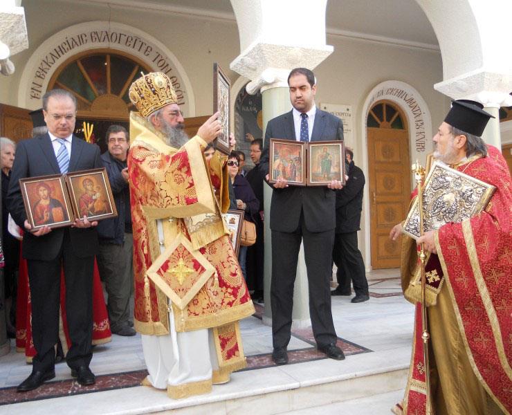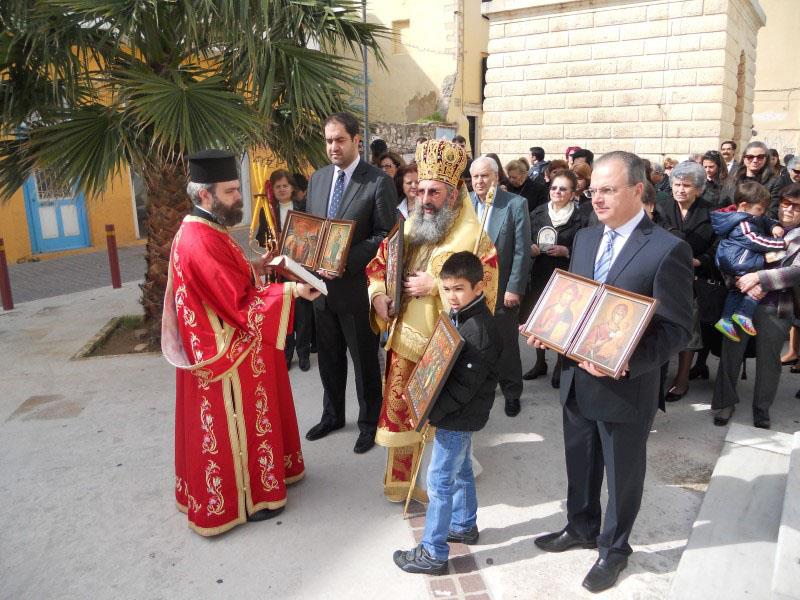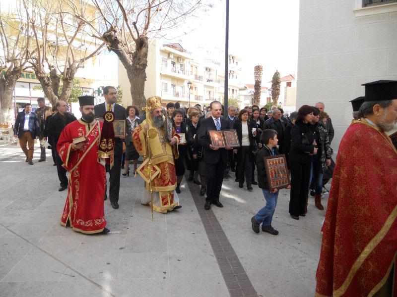 Στο τέλος της Θείας Λειτουργίας, όπως ορίζει το Τυπικό, πραγματοποιήθηκε η Λιτάνευση των Ιερών Εικόνων και η ανάγνωση των καθορισμένων περικοπών από το Συνοδικό της Ζ Οἰκουμενικῆς Συνόδου.