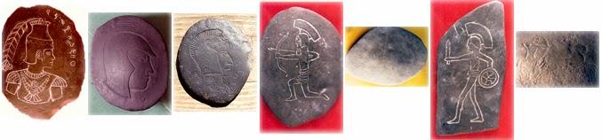 Εν κατακλείδι και συνοπτικά, τα παρατιθέμενα στο Διαδίκτυο ευρήματα επί αμερικανικού εδάφους περιλαμβάνουν πάμπολλες πέτρες με χαραγμένες επάνω τους μορφές στρατιωτών με στολές που θυμίζουν Μινωίτες, Φιλισταίους, Μυκηναίους, Φοίνικες και Αιγυπτίους, αρκετά πετρόγλυφα με μινωικού και αιγυπτιακού τύπου πλοία, και επιγραφές που άλλες θεωρούνται κυπρομινωικής γραφής και άλλες σύμμεικτες με ετρουσκικές, λατινικές και ελληνικές λέξεις. Το πιο εύγλωττο όμως οπτικά στοιχείο (εφόσον αποδειχθεί και αυθεντικό) είναι ένα μετάλλιο που βρέθηκε στο Cleveland του Οχάιο το 2006, με τον μινωικό πέλεκυ στη μία πλευρά και στην άλλη τον Πρίγκιπα των Κρίνων, που γνωρίζουμε από την τοιχογραφία στο ανάκτορο της Κνωσού (1690 π.Χ.)!