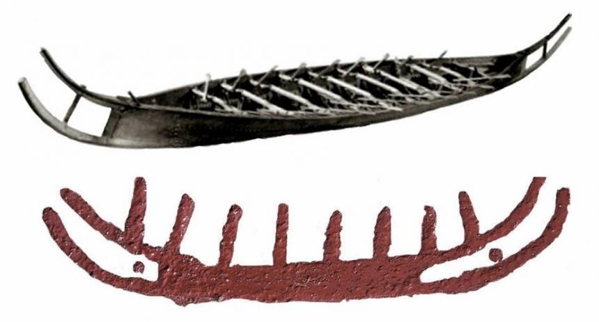 Το αρχαιότερο πλοίο των ακτών των Βίκινγκς, το Hjortspring, έχει τη μορφή των πετρόγλυφων μινωικών καραβιών