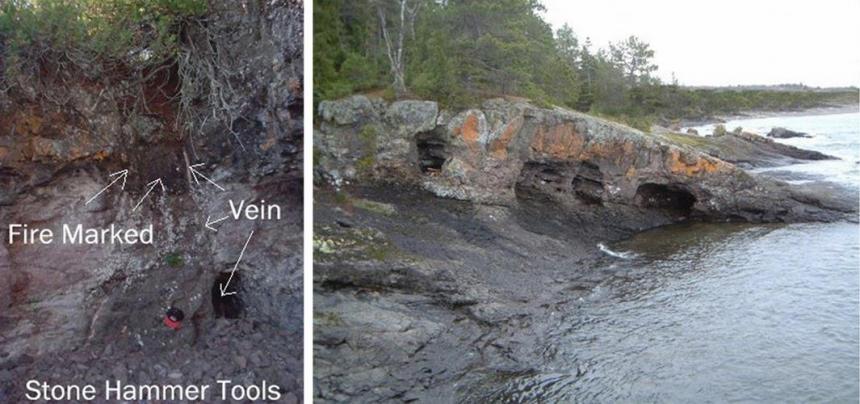 Μία από τις παράλιες φλέβες χαλκού στη λίμνη Superior των ΗΠΑ, με τα πανάρχαια ίχνη εξόρυξης