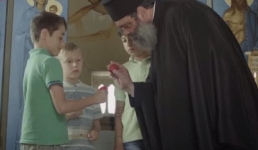 Τότε, ο μικρός μας πρωταγωνιστής με ταχύτητα πιάνει άλλο ένα από τη συσκευασία και πάει να τσουγκρίσει με το αβγό που η μαμά του κρατάει στο χέρι της. Ο μπαμπάς έκπληκτος κοιτάζει όλη τη σκηνή. Ο μικρός τσουγκρίζει το αυγό που σπάει με θόρυβο. Με αυτόν τον ήχο «δένουμε» με επόμενο πλάνο από τσούγκρισμα Πασχαλιάτικων αυγών σε χώρο αγροτουριστικού καταλύματος όπου είναι στημένο στην ύπαιθρο γιορτινό τραπέζι με πολλά κρητικά εδέσματα.