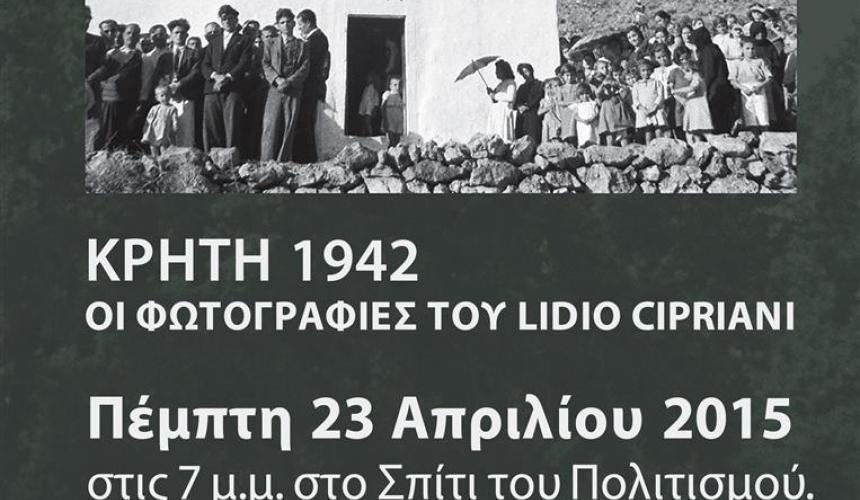 Στα τέλη του έτους 2014 κυκλοφόρησε σε δίγλωσση έκδοση (ελληνικά και ιταλικά) το βιβλίο «Κρήτη 1942. Οι φωτογραφίες του Lidio Cipriani». Πρόκειται για ένα εξαιρετικό φωτογραφικό τεκμήριο της Κρήτης και των ανθρώπων της κατά τη διάρκεια της Κατοχής.