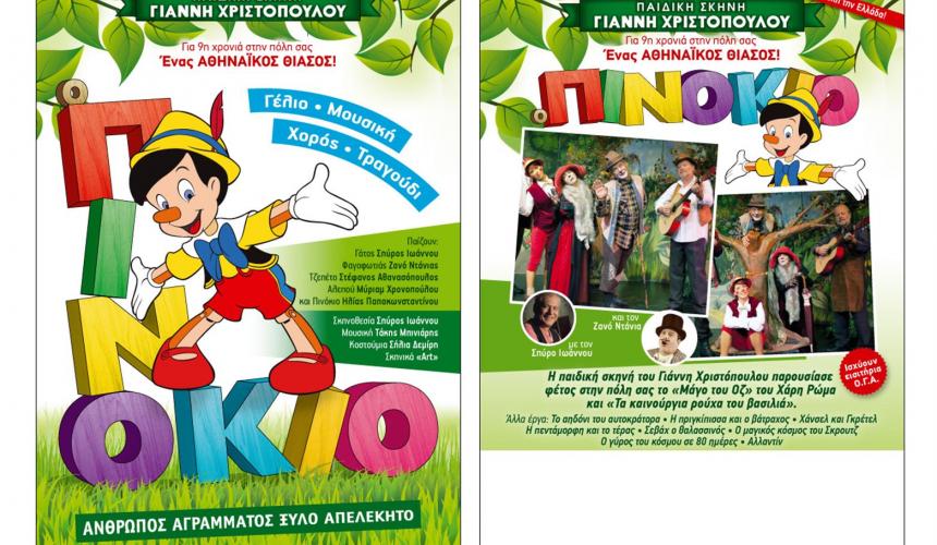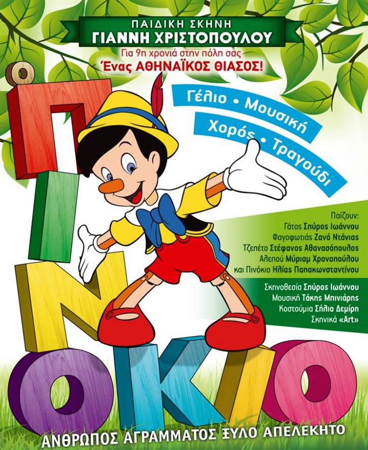 Η Παιδική Σκηνή του Γιάννη Χριστόπουλου παρουσιάζει το παιδικό θεατρικό έργο "ΠΙΝΟΚΙΟ" (Άνθρωπος αγράμματος, ξύλο απελέκητο), ένα παραμύθι που έχει μεγαλώσει αλλά και μεγαλώνει γενιές και γενιές.