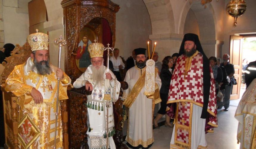 Το πρωί της μεγάλης γιορτής στην ακολουθία του Όρθρου χοροστάτησε ο Σεβ. Μητροπολίτης Λάμπης, Συβρίτου καί Σφακίων κ. Ειρηναίος, συνοδευόμενος από κληρικούς της Μητροπόλεώς του. Στο λαμπρό Αρχιερατικό Συλλείτουργο συνιερούργησαν ο Σεβασμιώτατος κ. Ειρηναίος και ο Επίσκοπος μας κ. Ευγένιος, πλαισιούμενοι από κληρικούς τόσο της Μητροπόλεώς μας όσο και άλλων Επαρχιών της Κρήτης με προεξάρχοντα τον Πανοσιολ. Αρχιμ. Πρόδρομο Ξενάκη, Υπογραμματέα της Ιεράς Επαρχιακής Συνόδου της Εκκλησίας Κρήτης και Γενικό Αρχιερατικό Επίτροπο της Ιεράς Αρχιεπισκοπής Κρήτης. Με την παρότρυνση του Επισκόπου μας, ο π. Πρόδρομος κήρυξε το Θείο λόγο αναφερόμενος στο βίο, το μαρτύριο και το παράδειγμα της Αγίας Μεγαλομάρτυρος και Ισαποστόλου Ειρήνης.