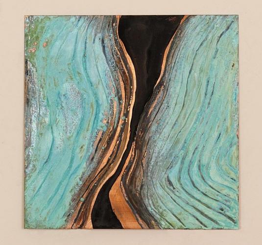 Ένα τέτοιο έργο είναι το Cycle of Trace, 2012 (130 x145 εκ., ατσάλι) στο οποίο μπορούμε να δούμε γραμμές και κηλίδες που θυμίζουν τα αποτυπώματα χεριών πάνω σε Παλαιολιθικούς τοίχους, ή το σκοπίμως ρυθμικό χειρονομιακό στάξιμο του Jackson Pollock. Το Cycle περιλαμβάνει ουδέτερους χρωματικά τόνους στο χρώμα της σκουριάς αντιπαραθέτοντας πολλαπλές θερμές και ψυχρές αποχρώσεις. Το υλικό υποστήριξης είναι ταλαιπωρημένο μέταλλο με τρύπες, χτυπήματα, μπαλώματα, καρφιά πάνω σε μια επιφάνεια που και η ίδια είναι τσαλακωμένη σαν ύφασμα. Αυτή η συμφωνία από απαλά χρώματα και σημάδια επιτυγχάνει ένα έργο με διττή ανάγνωση είτε με όρους των Νεο- ή Παλαιολιθικών ζωγραφισμένων πετρωμάτων ή κυριολεκτικά, όπως φαίνεται από τα δύο καρφωμένα μπαλώματα.