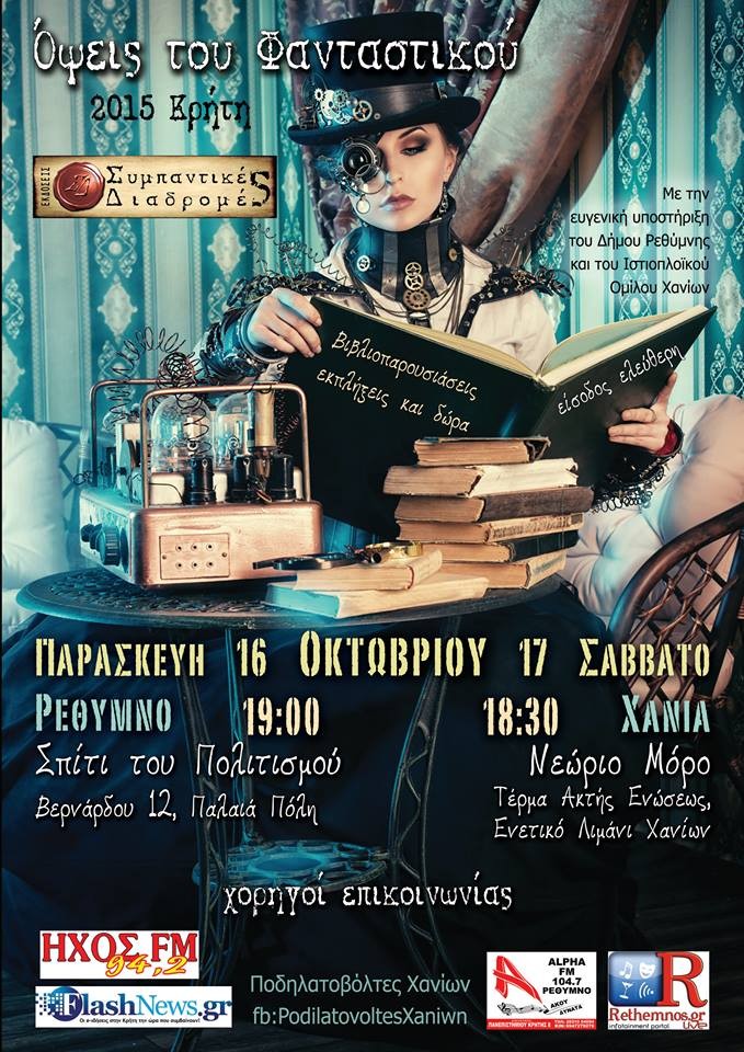 Οι εκδηλώσεις ΟΨΕΙΣ ΤΟΥ ΦΑΝΤΑΣΤΙΚΟΥ 2015-16 στο Ρέθυμνο θα διοργανωθούν την Παρασκευή 16 Οκτωβρίου, από τις 19:00 το απόγευμα στo Σπίτι του Πολιτισμού, Βερνάρδου 12, Πλησίον Ωδείου, Παλαιά Πόλη - Τηλ: 28310 40150