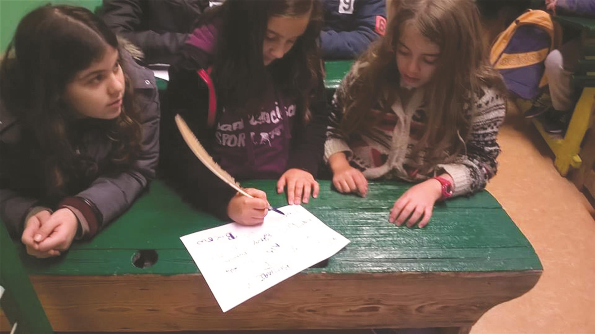 Ήρθε η ώρα για να μπουν οι μαθητές στην τάξη. Κάθισαν τρεις-τρεις στα θρανία, έγραψαν την ορθογραφία στον μαυροπίνακα και τον έσβησαν με το κουνελοπόδαρο. Έγραψαν και τις ασκήσεις τους με το φτερό και μελάνι. Οι άταχτοι μαθητές «έφαγαν» και τις ξυλιές τους με την «αργουλιδόβιτσα».