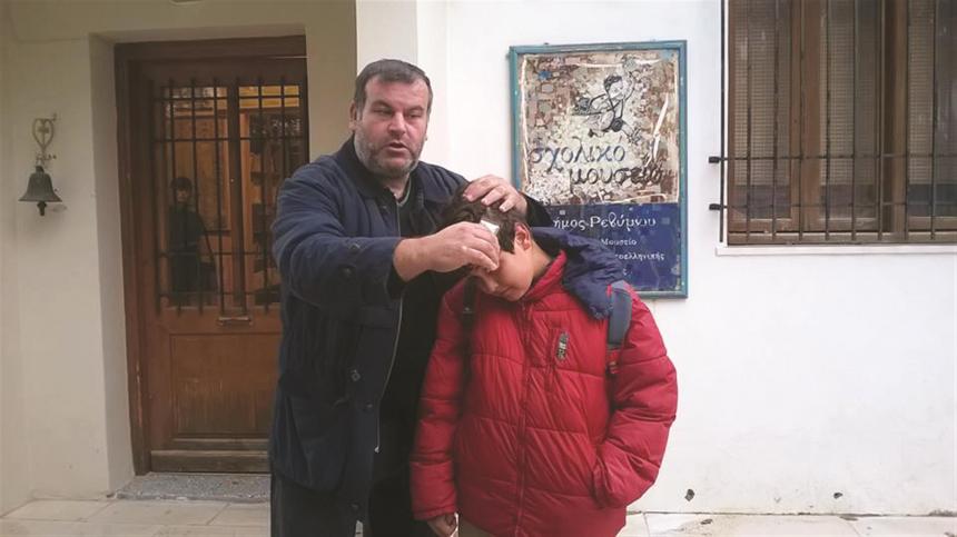 Πρώτη στάση στην αίθουσα του Πολιτιστικού Συλλόγου, όπου τους μαθητές περίμεναν ο Χάρης Στρατιδάκης, Σχολικός Σύμβουλος Α/θμιας Εκπ/σης και τα μέλη του Πολιτιστικού Συλλόγου Γιώργος Κανακάκης και Μαρία Θανοπούλου, εμψυχωτές του εκπαιδευτικού προγράμματος. Εκεί, ο Χάρης Στρατιδάκης έκανε μια εισαγωγή στους μαθητές για τη σχολική ζωή των περασμένων δεκαετιών στο Ρέθυμνο, για τους δασκάλους της εποχής, τα παιχνίδια, τις σχολικές ποινές.