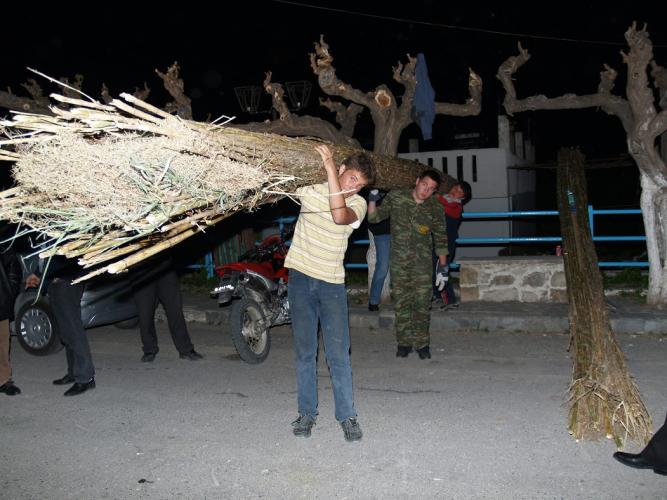 Την κατασκευή των «λαμπάδων» αναλαμβάνουν οι νέοι του χωριού αρκετές ημέρες πριν την Μ. Παρασκευή μαζεύοντας καλάμια και αστιβίδες από το χωριό και τη γύρω περιοχή. Οι "λαμπάδες" προετοιμάζονται νωρίς το απόγευμα της Μ. Παρασκευής στη πλατεία του Αγίου Ιωάννη και λίγο πριν να ξεκινήσει η λιτανεία του Επιταφίου ανάβουν και προπορεύονται του επιταφίου δημιουργώντας μια ατμόσφαιρα που ταξιδεύει, όσους παρευρεθούν, πίσω στο χρόνο.