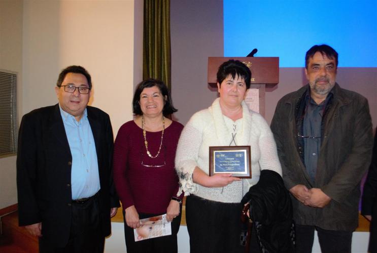 Την τιμητική πλακέτα παρέλαβε συγκινημένη η κόρη του Νικία Σταυρουλάκη, από τον Σεβασμιότατο Μητροπολίτη Ρεθύμνης και Αυλοποτάμου κ. Ευγένιο, την Αντιπεριφερειάρχη κ. Μαρία Λιονή και τους εκπροσώπους των Πειραματικών Σχολείων.