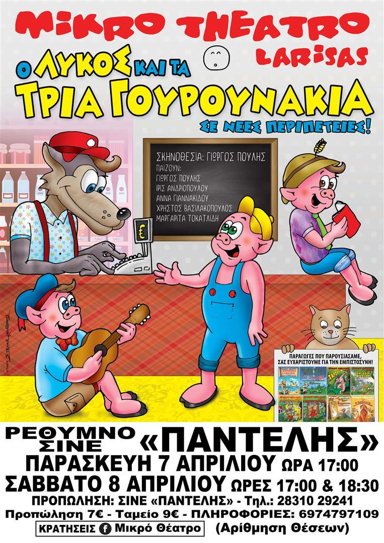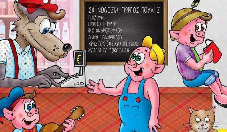 Tο πασίγνωστο παραμύθι του James Halliwell-Phillipps σε μια νέα θεατρική απόδοση, όπου θα διασκεδάσει τους μικρούς και μεγάλους φίλους. "Ο Λύκος και τα Τρία Γουρουνάκια σε νέες περιπέτειες"! Τα τρία γουρουνάκια προσπαθούν να φτιάξουν τα δικά τους σπίτια και ο Λύκος βρίσκει την ευκαιρία να τους "κλέψει" τις λίρες! Δεν είναι τελείως μόνος αυτή την φορά, καθώς έχει και την αμέριστη συμπαράσταση του ....βοηθού του!! Θα καταφέρουν τα γουρουνάκια να γλιτώσουν και να χτίσουν τα σπίτια τους?