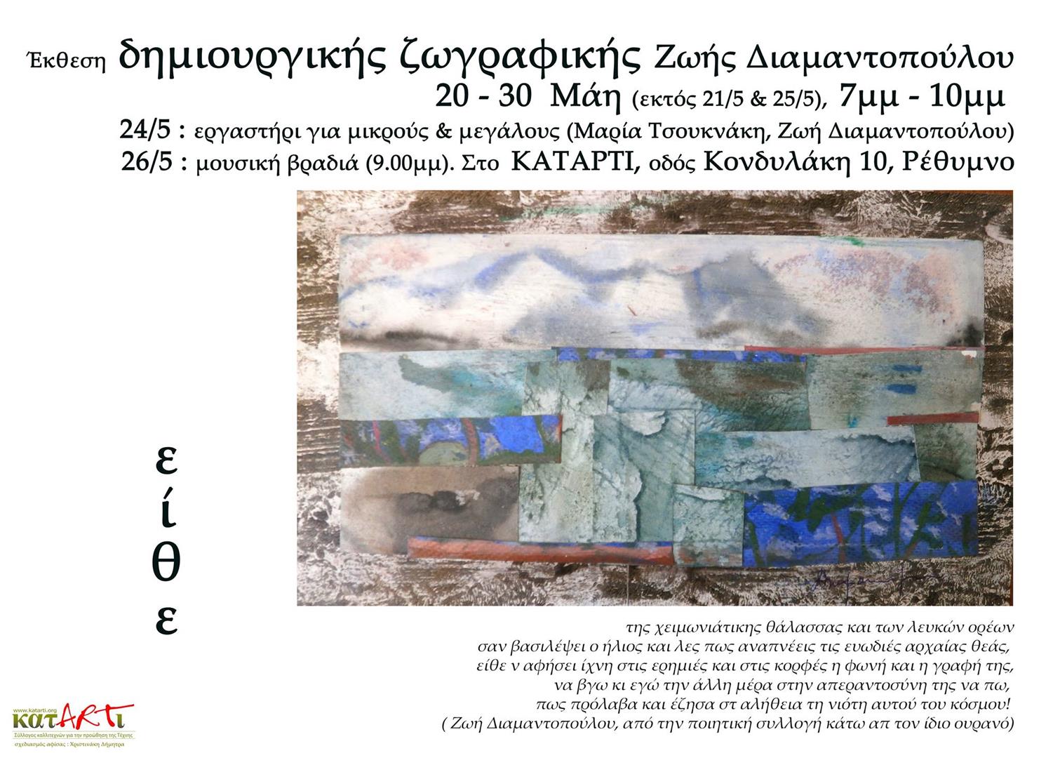 Ο σύλλογος κατΑRΤι έχει την χαρά να σας προσκαλεί στην έκθεση ζωγραφικής και κολλάζ της Ζωής Διαμαντοπούλου.
