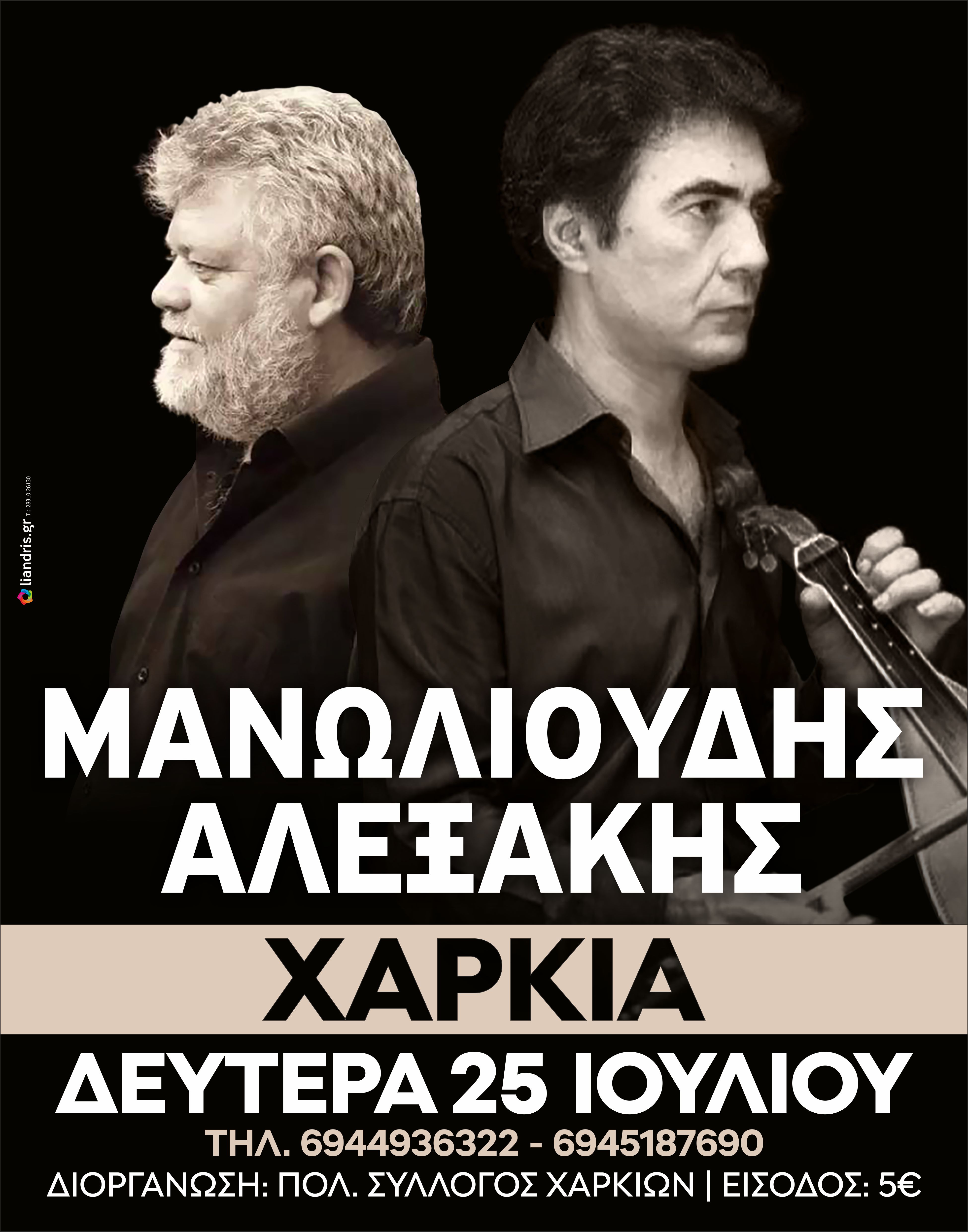 Ο Πολιτιστικός Σύλλογος Χαρκίων "Η Ψηλή κορφή" τιμώντας τη γιορτή της Αγίας Άννας διοργανώνει πανηγύρι τη Δευτέρα 25 Ιουλίου στον προαύλιο χώρο του παλιού σχολείου. Τη βραδιά θα ομορφύνουν με τις μουσικές τους οι Γ.Μανωλιούδης και Μ.Αλεξάκης με το συγκρότημα τους. Θα είναι χαρά μας να σμίξουμε και να γλεντήσουμε! Για Ρεζερβε : 6944936322 και 6945187690