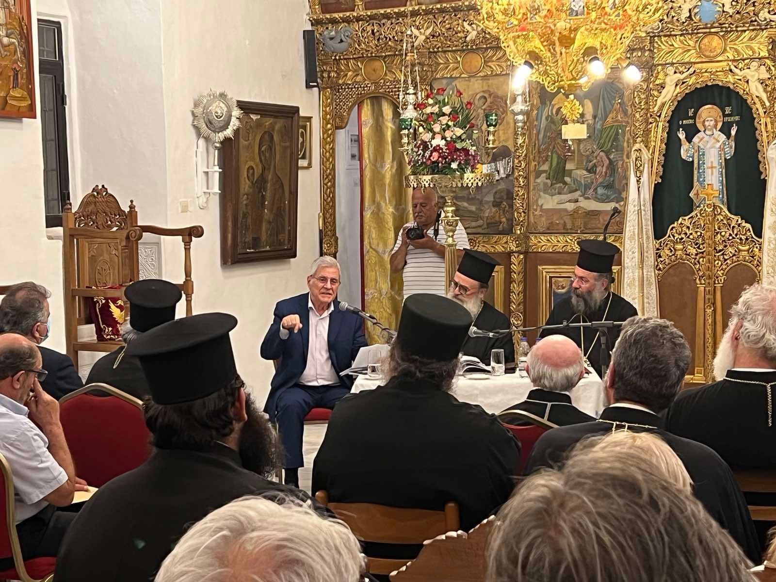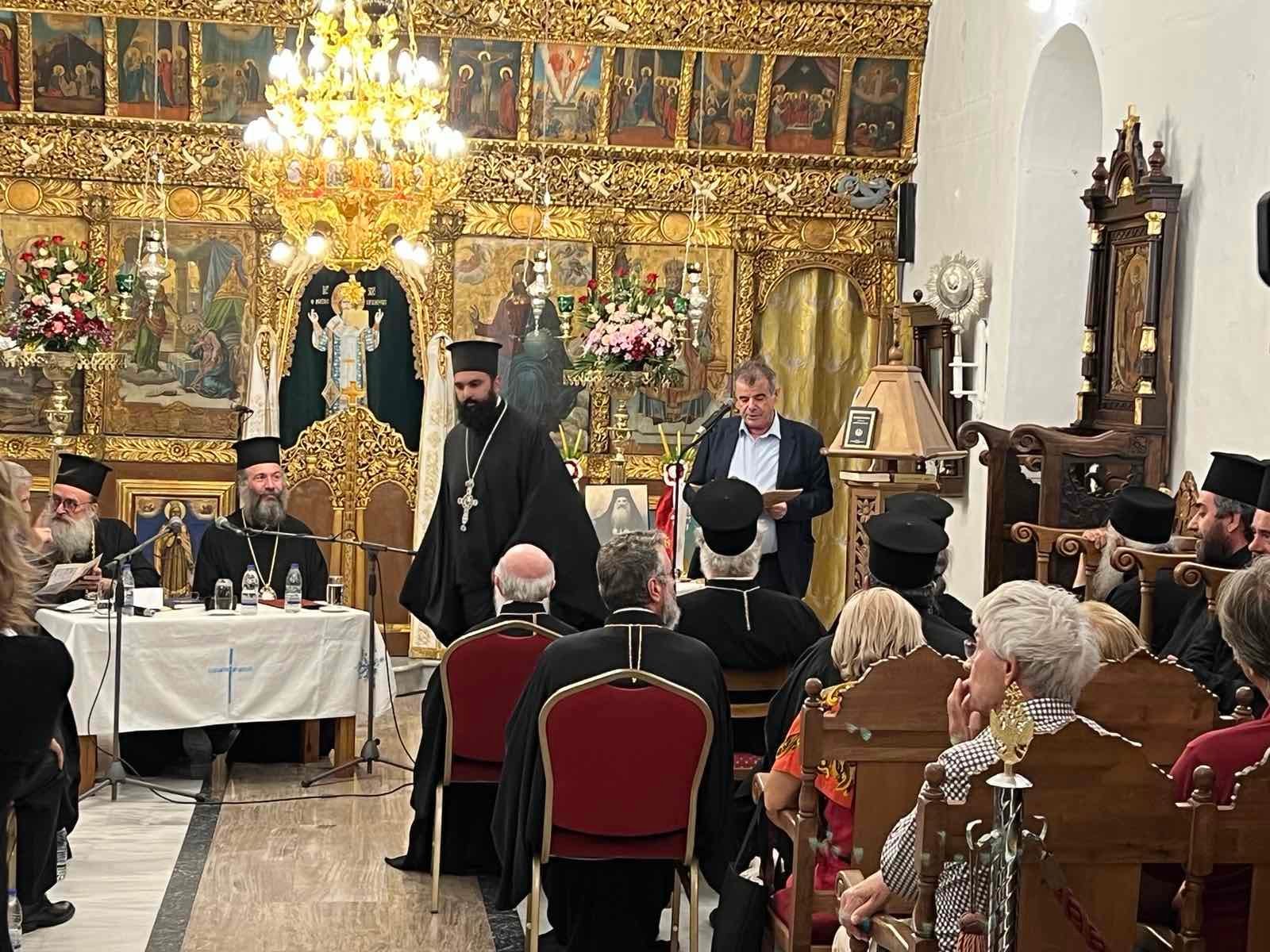 Παρόντες στην παρουσίαση του βιβλίου ήταν ο Σεβασμιώτατος Αρχιεπίσκοπος Κρήτης κ. Ευγένιος και οι Σεβασμιώτατοι Μητροπολίτες Λάμπης Συβρίτου και Σφακίων κ. Ειρηναίος, Γορτύνης και Αρκαδίας κ. Μακάριος, Αρκαλοχωρίου, Καστελλίου και Βιάννου κ. Ανδρέας, Κισάμου και Σελίνου κ. Αμφιλόχιος και Ρεθύμνης και Αυλοποτάμου κ. Πρόδρομος, Ο Θεοφιλέστατος Επίσκοπος Βαβυλώνος του Πατριαρχείου Αλεξανδρείας κ Θεόδωρος, ο θεοφιλέστατος Επίσκοπος Ευμενείας κ Ειρηναίος, Ο Ηγουμενος της Ιεράς Μονής Πρέβελη κ Ιάκωβος ο Δήμαρχος Δήμου Αγίου Βασιλείου κ. Ιωάννης Ταταράκης, η Αντιδήμαρχος Εθελοντισμού Ελένη Γαραντωνακη, ο Εντεταλμένος Δημοτικός σύμβουλος Πολιτισμου και Δημόσιας Υγείας Γιάννης Νεκταριος Χαραλαμπακης, ο πρώην Δήμαρχος Αρκαδίου Μανόλης Μανωλακακης και πλήθος κόσμου.