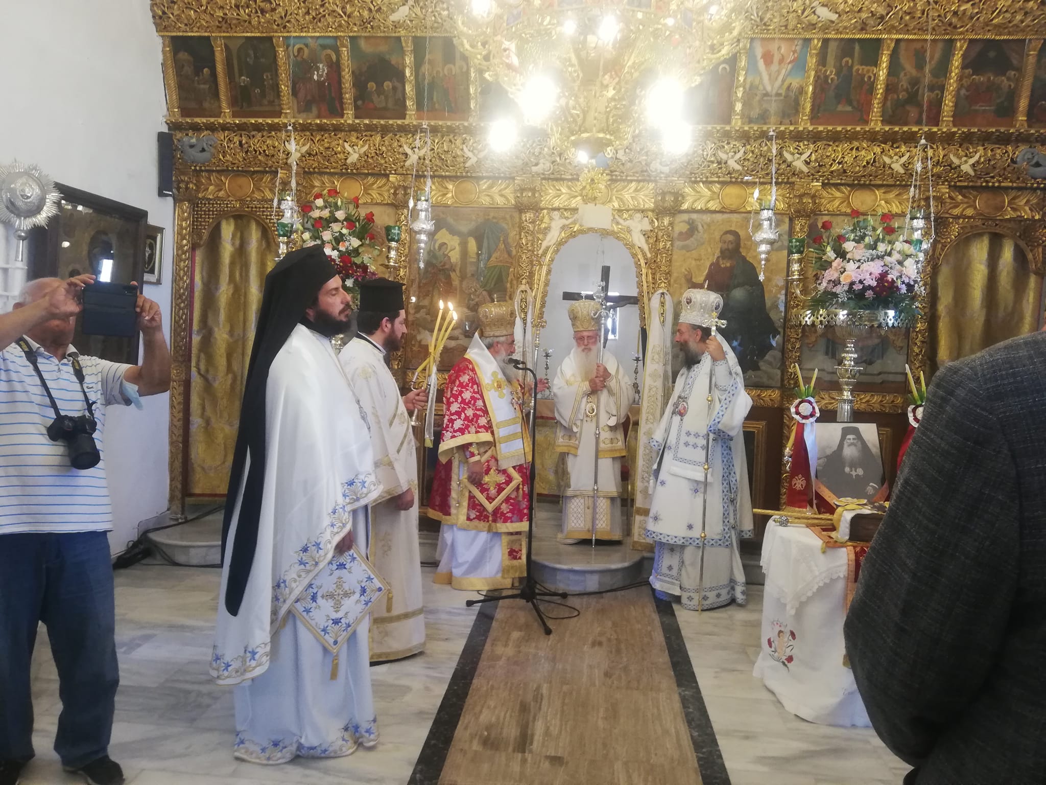 7:00- 11:00 π.μ. τελέστηκε Πολυαρχιερατική Θ. Λειτουργία χοροστατουντος του Αρχιεπισκοπου Κρήτης κ Ευγενιου, Λάμπης Συβρίτου και Σφακίων κ Ειρηναίου, Ρεθύμνης και Αυλοποταμου κ Προδρόμου, του Πρωτοσυγκελου Λάμπης κ Αθανασίου Καραχαλιου και του Ηγουμένου της Μονής Αγίου Πνεύματος Κισσου κ Βαρθολομαίου, ενώ παραβρέθηκαν η Αντιπεριφερειαρχης Μαίρη Λιονη, ο Δήμαρχος Αγίου Βασιλείου Γιάννης Ταταράκης, ο θεματικός Αντιπεριφεριάρχης Νίκος Κακογιαννακης, ο Ομότιμος Καθηγητής και Άρχων Οφικιαλος της Αγίας του Χριστού Μεγάλης Εκκλησίας κ Νικόλαος Ξεξακης, ο περιφερειακός Σύμβουλος Κώστας Δανδουλακης, ο Εντεταλμένος Δημοτικός σύμβουλος Γιάννης Νεκταριος Χαραλαμπακης, ο διοικητής της Σχολής Δοκιμων Αστυφυλακων Ρεθύμνου Σπύρος Γερμανακης, η εκπρόσωπος του Λιμεναρχειου, ο Πρόεδρος της Τοπικής Κοινότητας Κεραμε Γεώργιος Αλεβυζάκης, ο Πρόεδρος της Τοπικής Κοινότητας Δρυμισκου Ελευθέριος Κυριακακης και ακολούθησαν στις 11: 15 π.μ. τα Αποκαλυπτήρια Μνημείου του Πρωθιεράρχου της Εκκλησίας Κρήτης κυρού Βασιλείου Μαρκάκη, στον αύλειο χώρο του Ι. Ναού του Αγίου Δημητρίου, από τον Σεβασμιώτατο Αρχιεπίσκοπο Κρήτης.