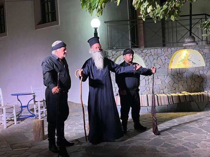 Στη 12η μεσημβρινή παρατέθηκε φιλοξενία στον χώρο του Πολιτιστικού Συλλόγου Κεραμέ, στην οποία παρακάθησαν όλοι οι παραπάνω, ενώ στις 8:00 μ.μ. παρουσία των Σεβασμιώτατων Λάμπης Συβρίτου και Σφακίων κ Ειρηναίου, Γορτυνης κ Μακαρίου και Κυδωνίας και Αποκορώνου κ Δαμασκηνού δόθηκε θεατρική παράσταση από τη θεατρική ομάδα του Πολιτιστικού Κέντρου της Ι. Μητροπόλεως Γορτύνης και Αρκαδίας, με σκηνοθέτη την Μαρία Βασιλάκη, εμπνευσμένη από τη ζωή και τον αντιστασιακό κατά των Γερμανών αγώνα του Πρωθιεράρχου κυρού Βασιλείου Μαρκάκη.